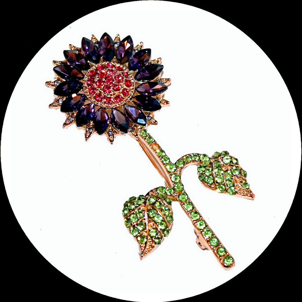 Large rose brooch with colourful crystals in antique gold-coloured metal