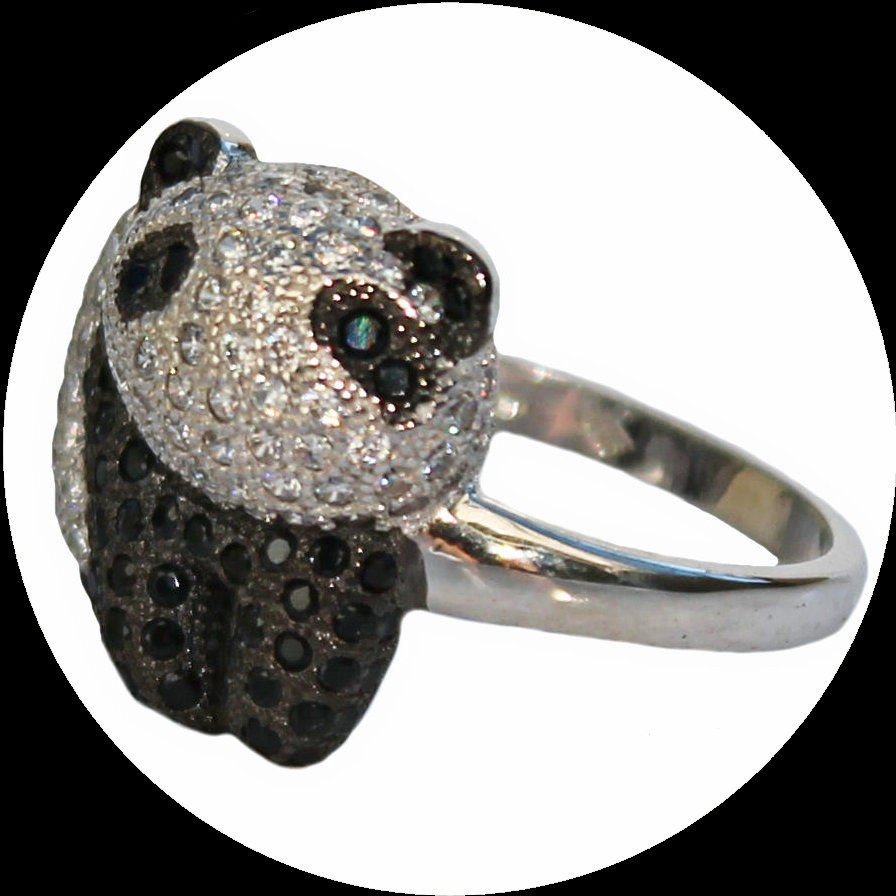 Ring mit zirkoniapaviertem Pandabär aus rhodinietem 925er Sterlingsilber